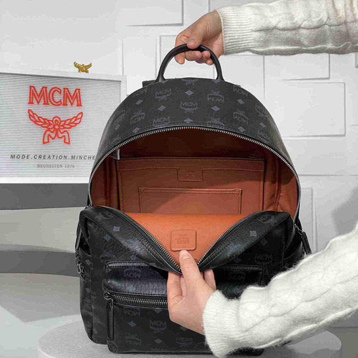 MCM スタイル ビゼトス スターク ミディアム リュック ナッパレザー ブラック サイズ:41×15.5×33.5cm