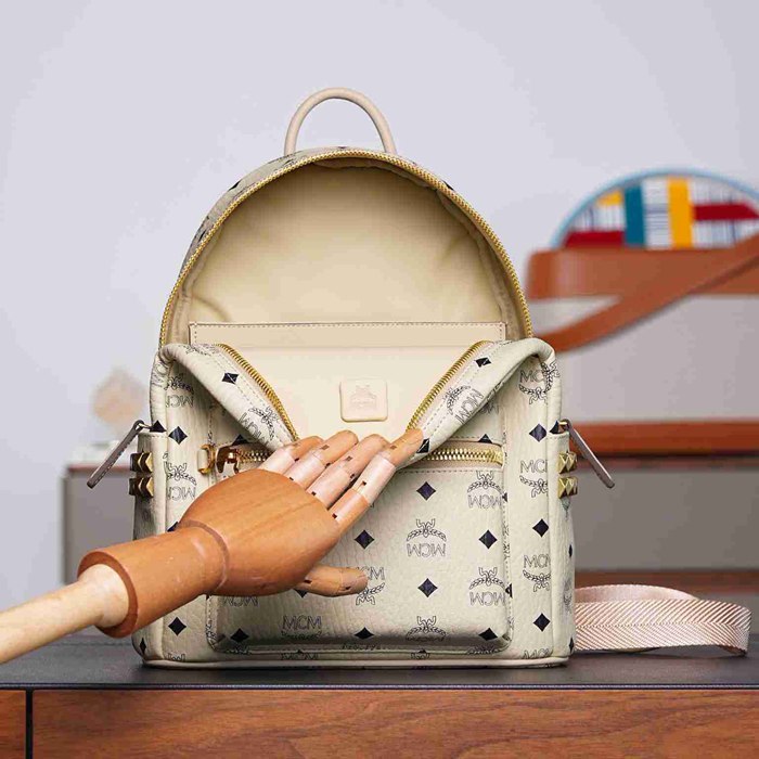 • MCM スタイル ビゼトス スターク スモール リュック ベージュ サイズ:33×13×26cm