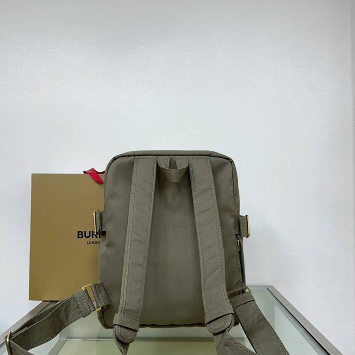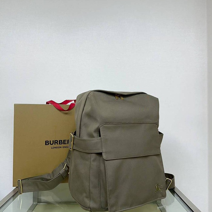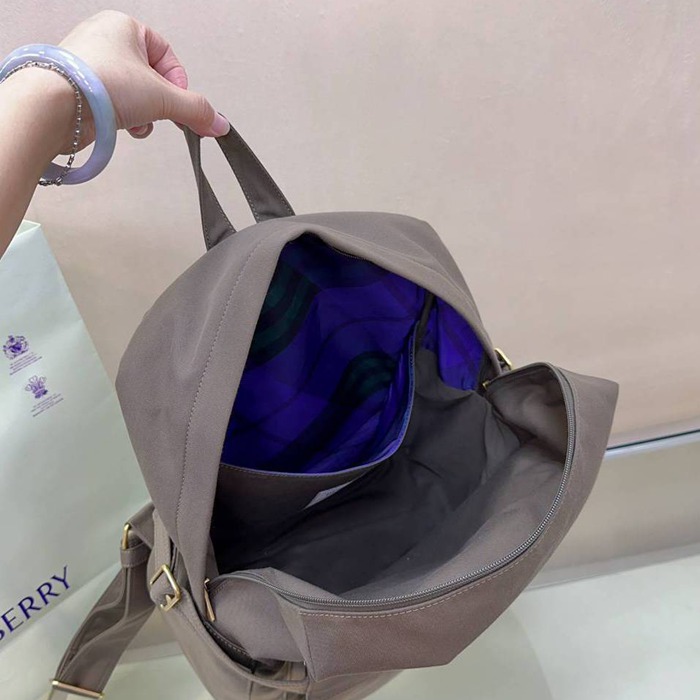 • バーバリー スタイル コットンミックス リュック 刺繍入り サイズ:33×10×43cm