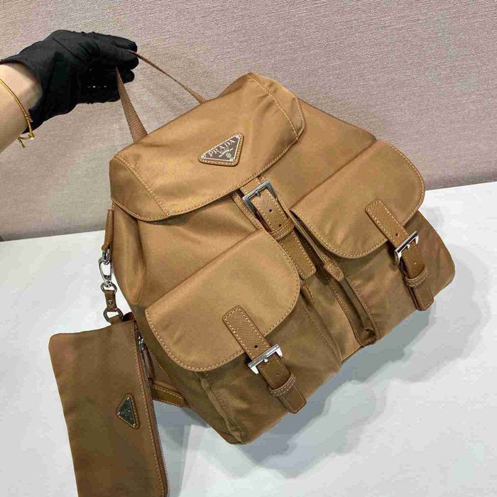 • プラダ スタイル リュック サフィアーノ レザー ポーチ付き サイズ:30×32×15cm