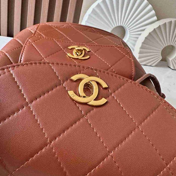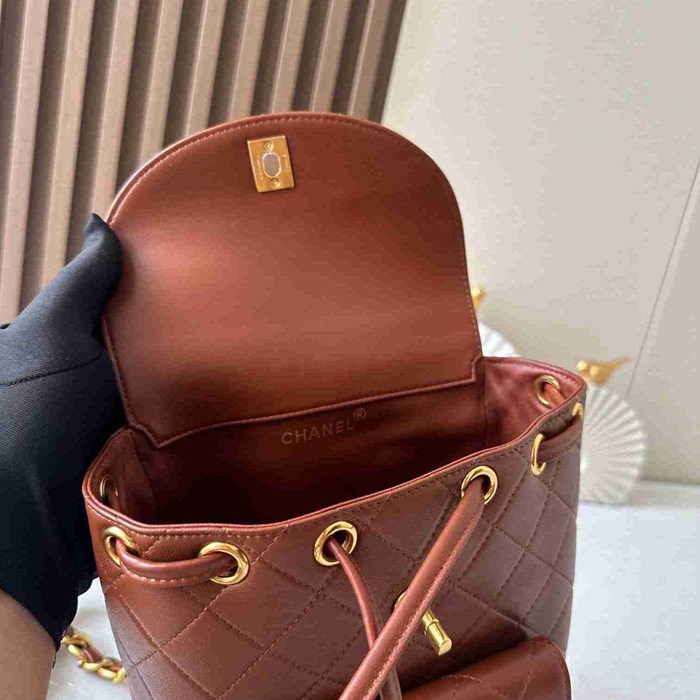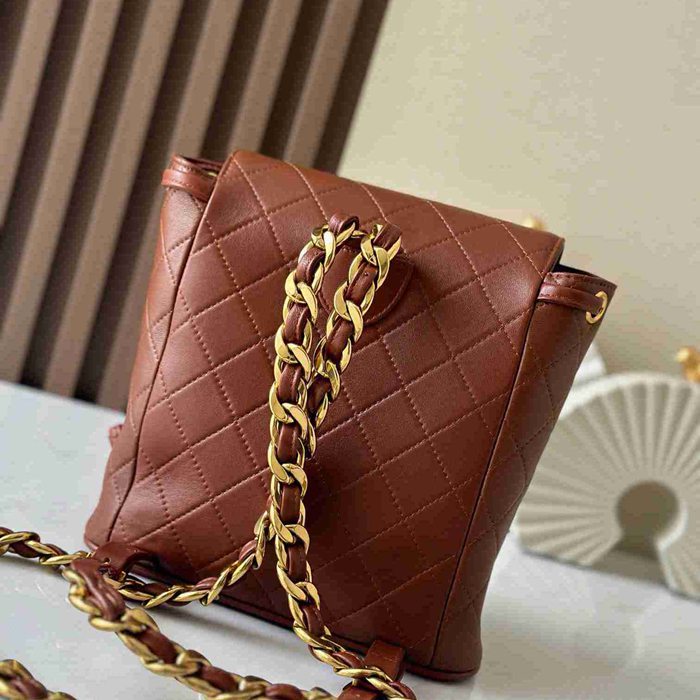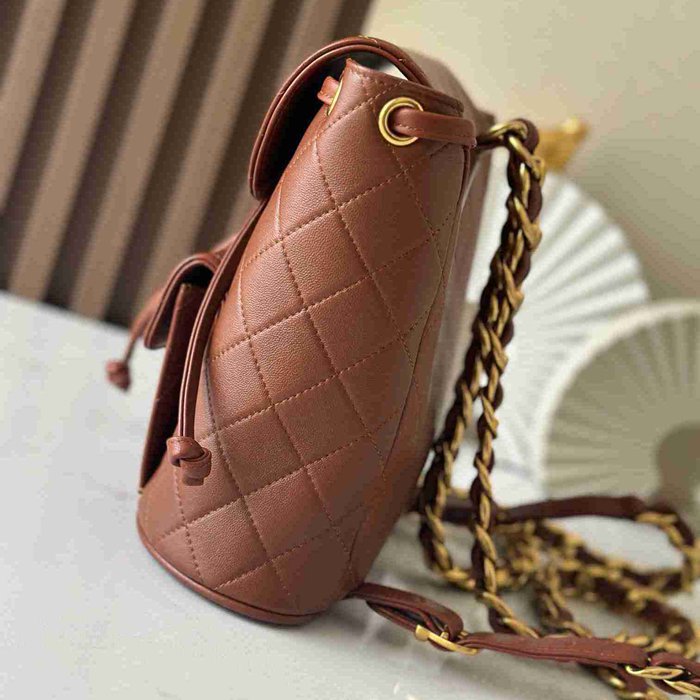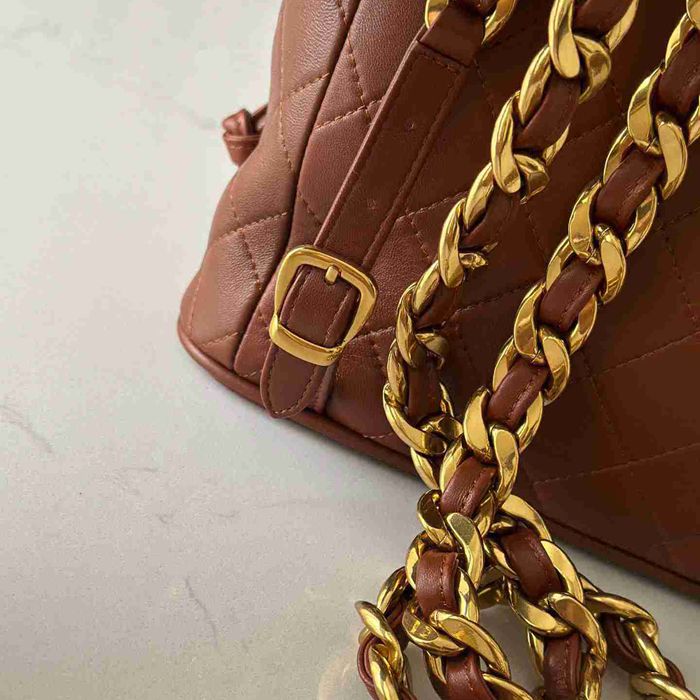 • シャネル スタイル ヴィンテージ リュック ブラウン サイズ:21×10×20.5cm
