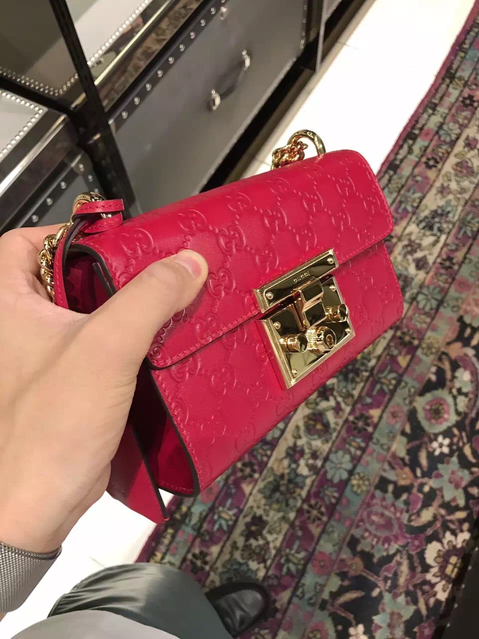 Hibiscus red Gucci Signature leather