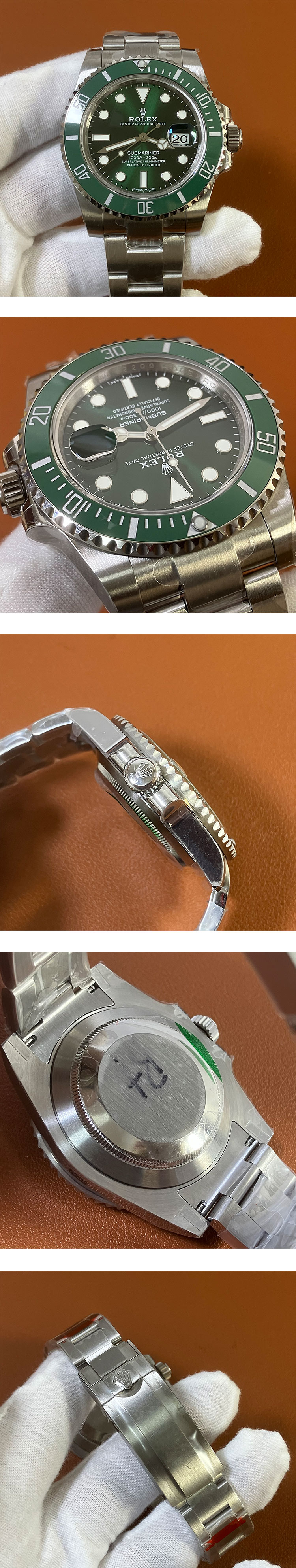文字盤: グリーン文字盤、2.5倍拡大率カレンダーレンズ、文字盤ルーレット刻印有り