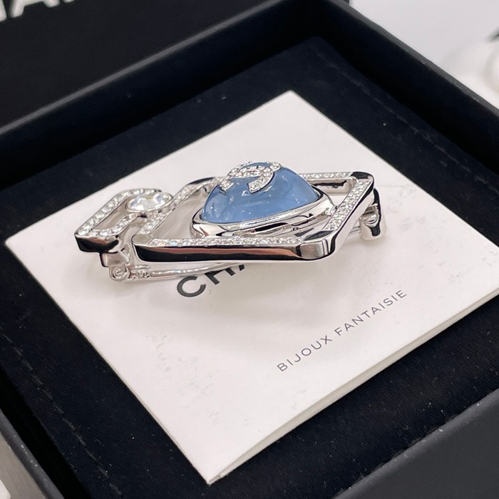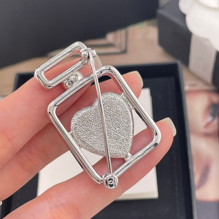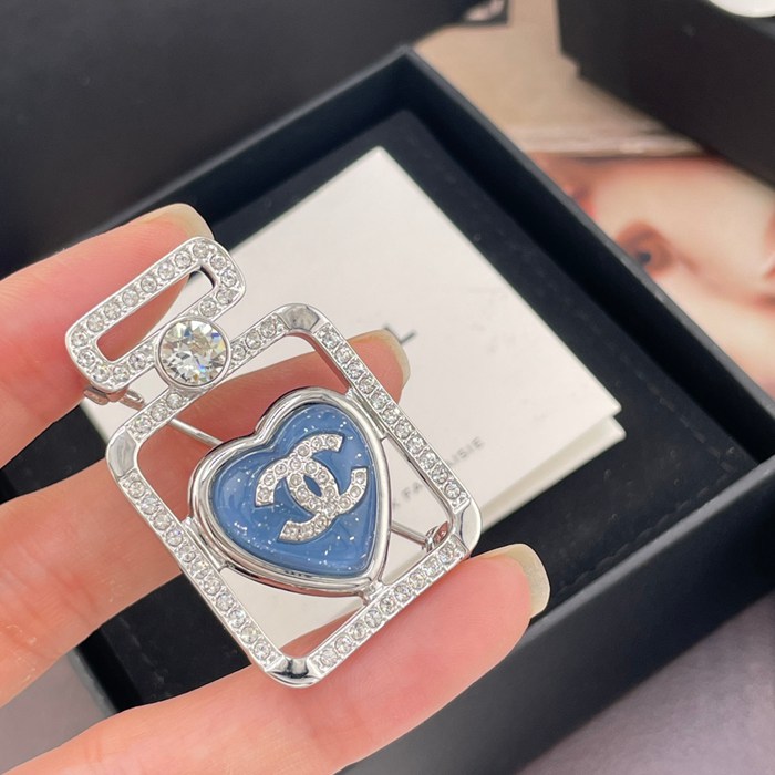 • ブローチ 香水瓶×ブルーハートブローチ — リゾートにぴったり、清爽なブルー、海を思わせる透明感