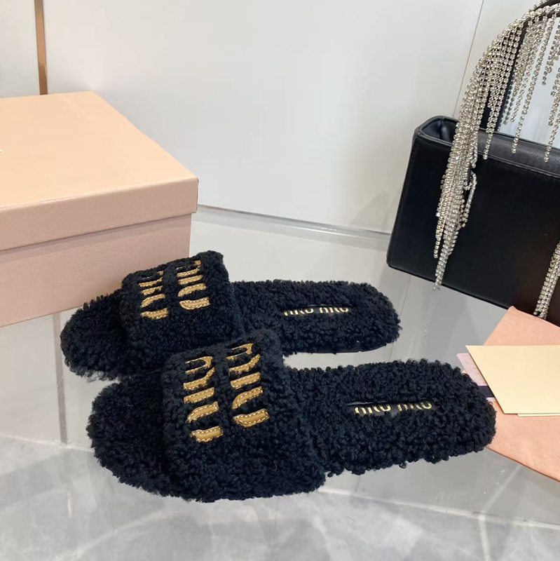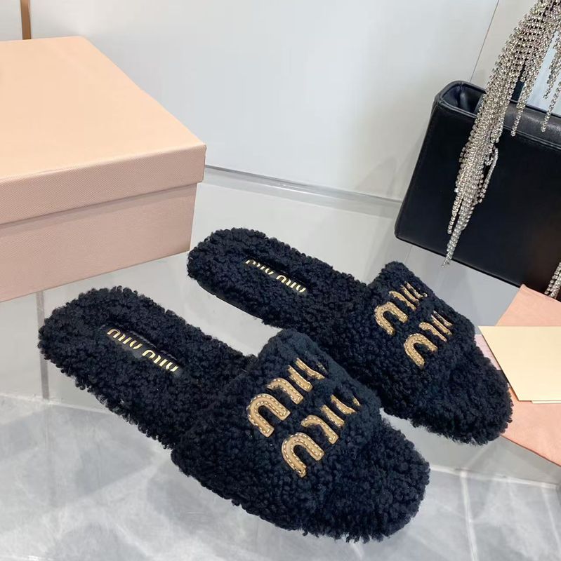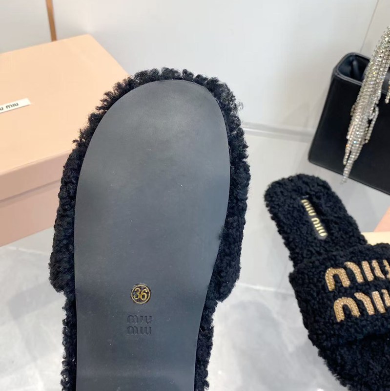 • 【MIUMIU】2026新色ウールスリッポンファースリッパレディース