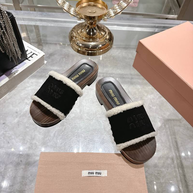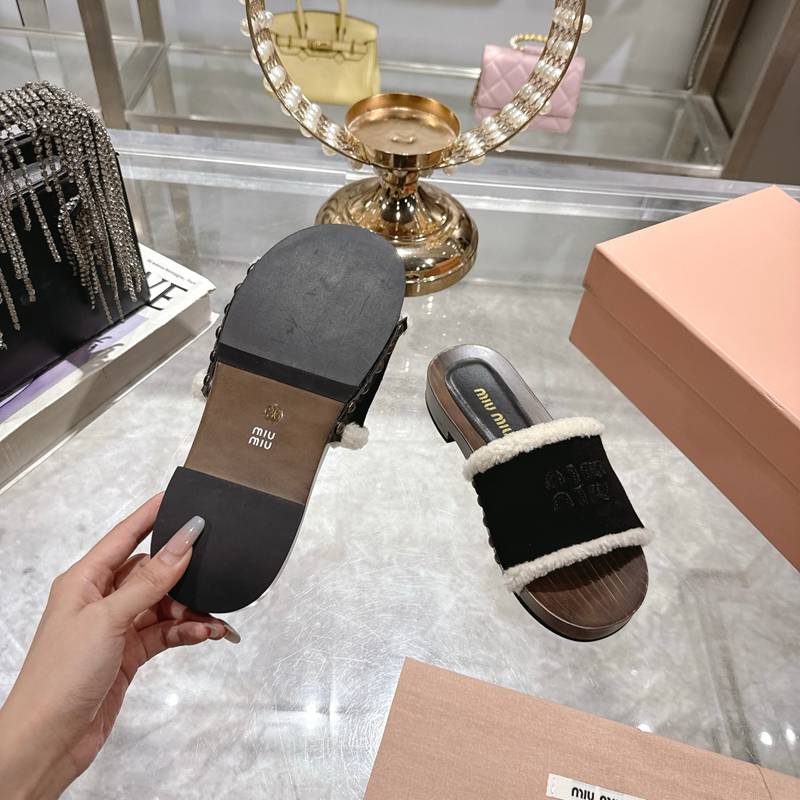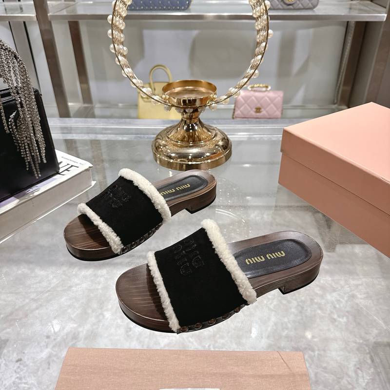 • 【MIUMIU】ウッドソールウールスリッポンレディース