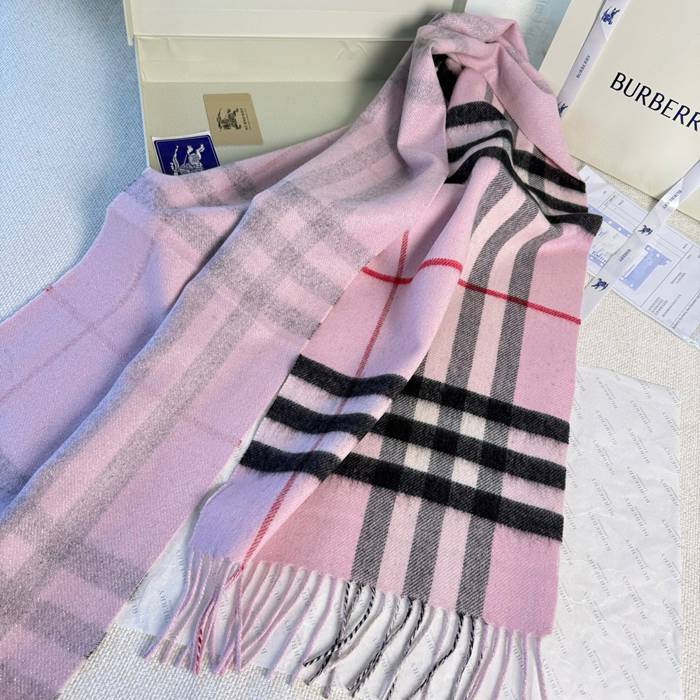バーバリー 両面チェック金属糸カシミヤスカーフ 30x168