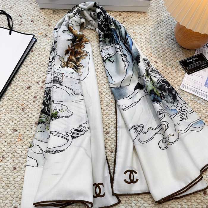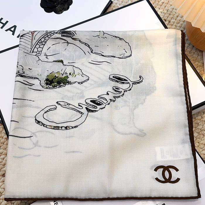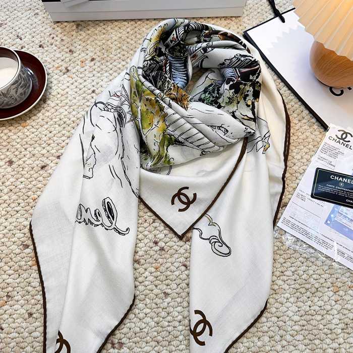 シャネル 新作 クラシックカメリアシルクベロアスカーフ 140x140cm