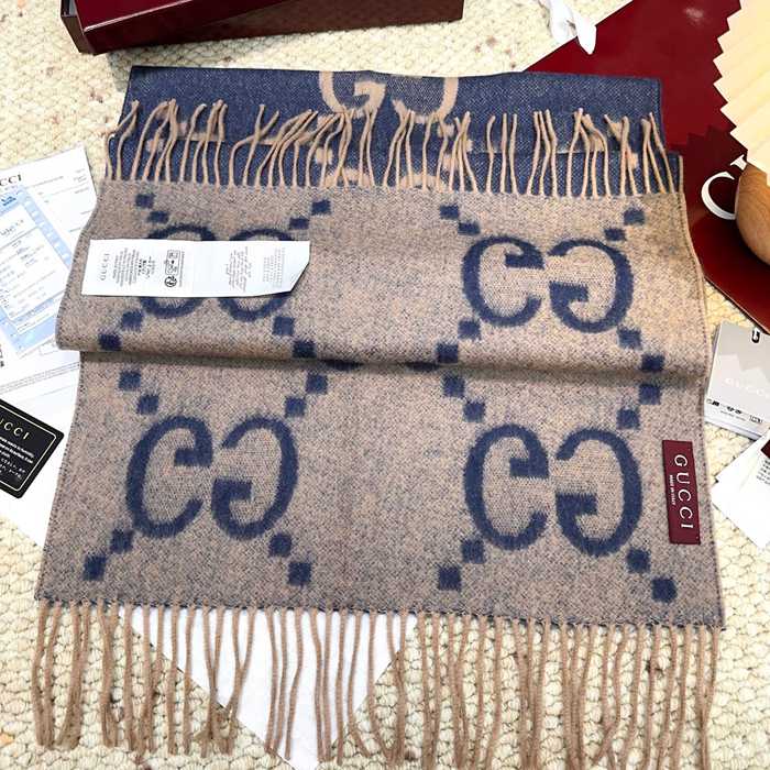 グッチ 新作 大G両面カシミヤスカーフ。100%カシミヤ 45x200cm