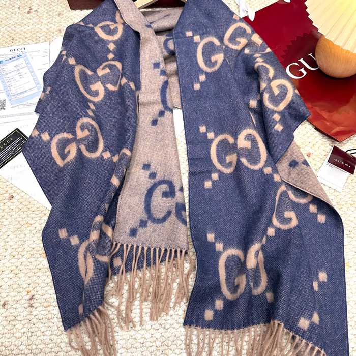 • グッチ 新作 大G両面カシミヤスカーフ。100%カシミヤ 45x200cm