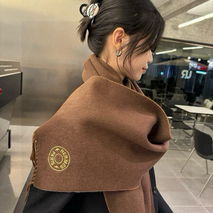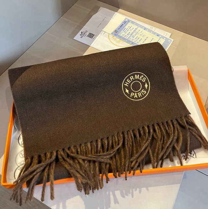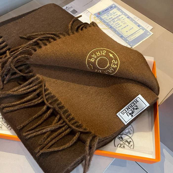 エルメス 両面ラムカシミヤスカーフ 30x180cm