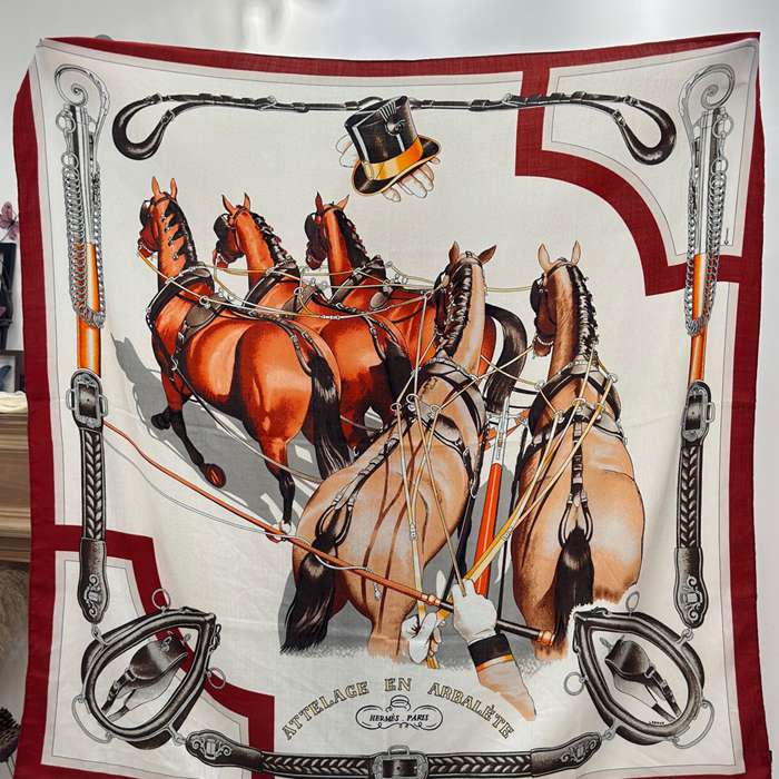 • エルメス 新入荷。ベロア両面同色140ストール。馬具モチーフ。手巻き裾。70%カシミヤ30%シルク 135 135cm