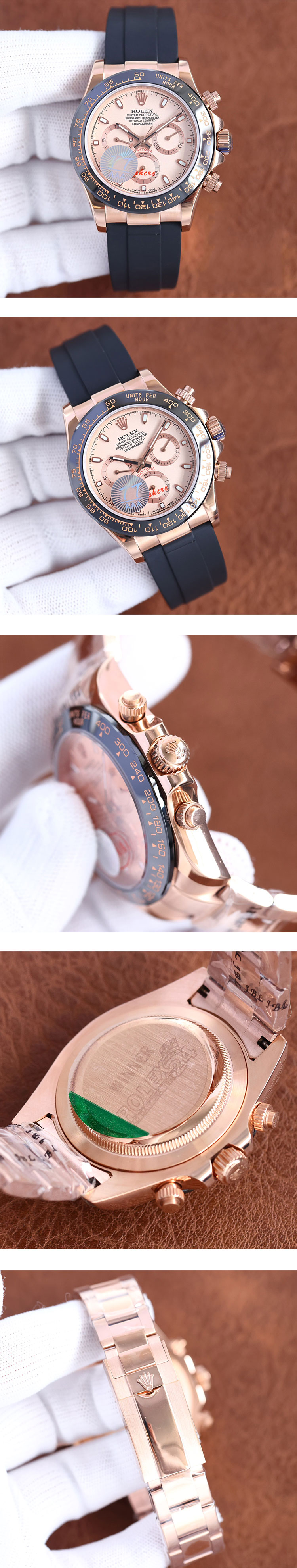 ベルト:ラバーベルト&14Kピンクゴールドバンド