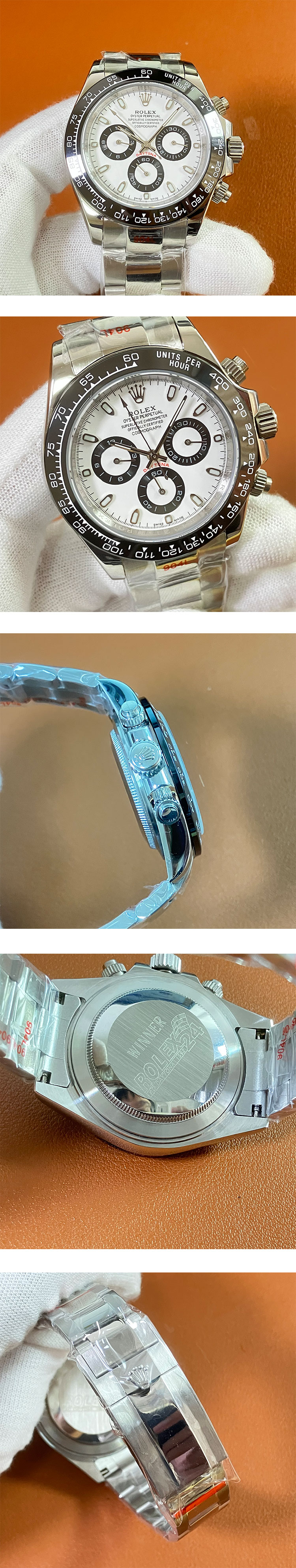 文字盤:ホワイト文字盤、クロノグラフインダイヤル積算計、スーパールミナス(夜光)