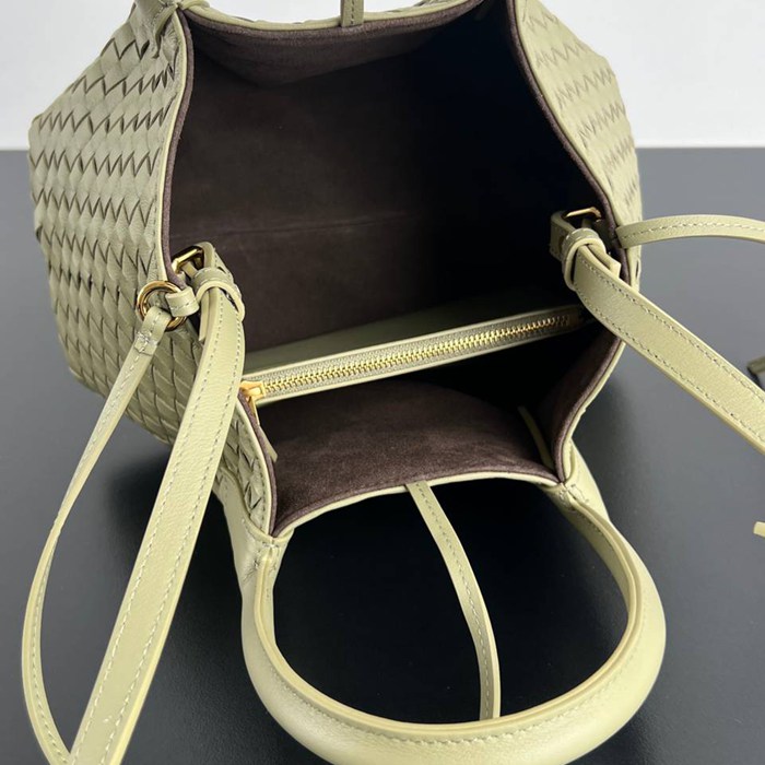 • BV トートバッグ レザー ハンドバッグ 編み込み 15×24×12cm