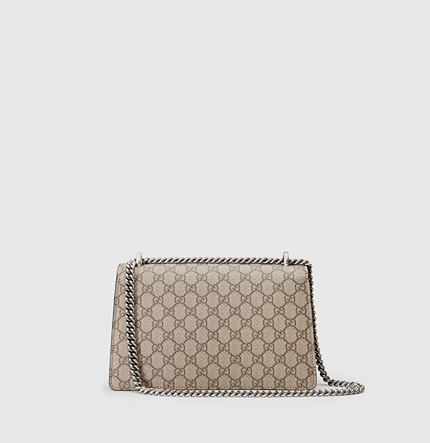 A structured GG supreme canvas bag with our textured tiger head spur closure. The sliding chain strap can be worn multiple ways, changing between a shoulder and a top handle bag.