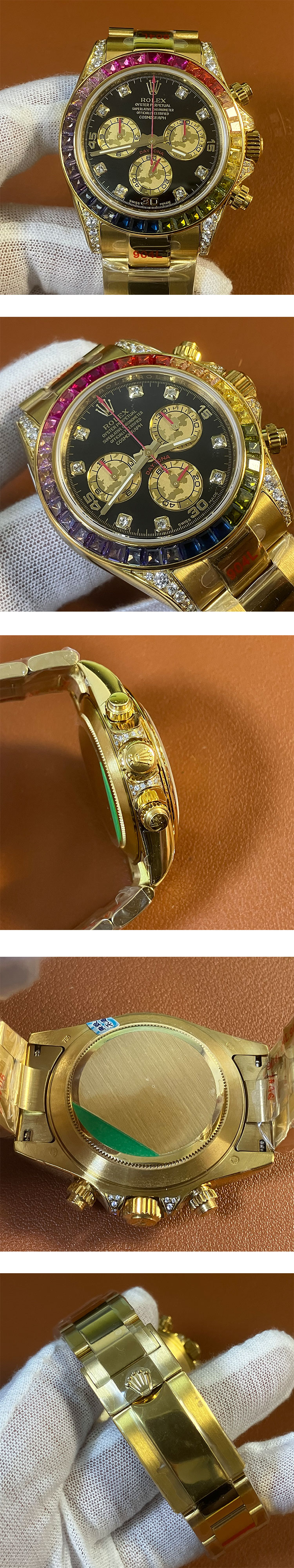 文字盤: ブラック文字盤、インダイヤル枠ローズゴールド、ルーレット(王冠&ROLEX)刻印