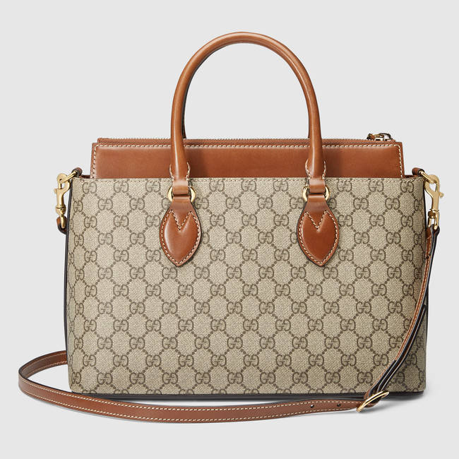 Beige/ebony GG Supreme canvas, made using an Earth-conscious process, with brown leather trim