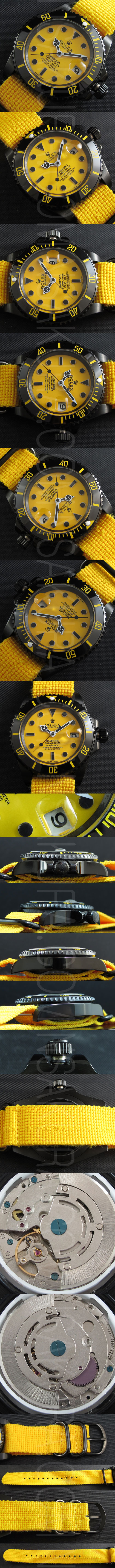 文字盤:黄色文字盤(ROLEXと王冠のルーレット刻印ある) インデックス:ブラック夜光コーディング(秒針、分針、指針など含め) ムーブ: Asain ムーブ搭載毎秒6振動 ・ 21600振動 オートマティック