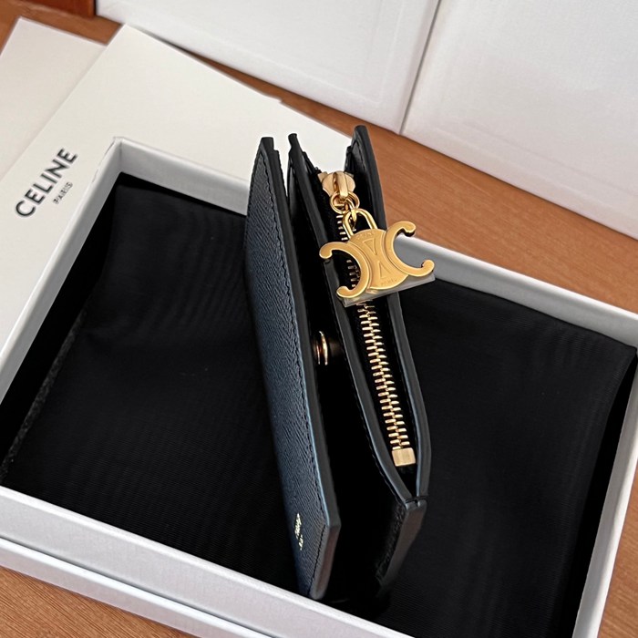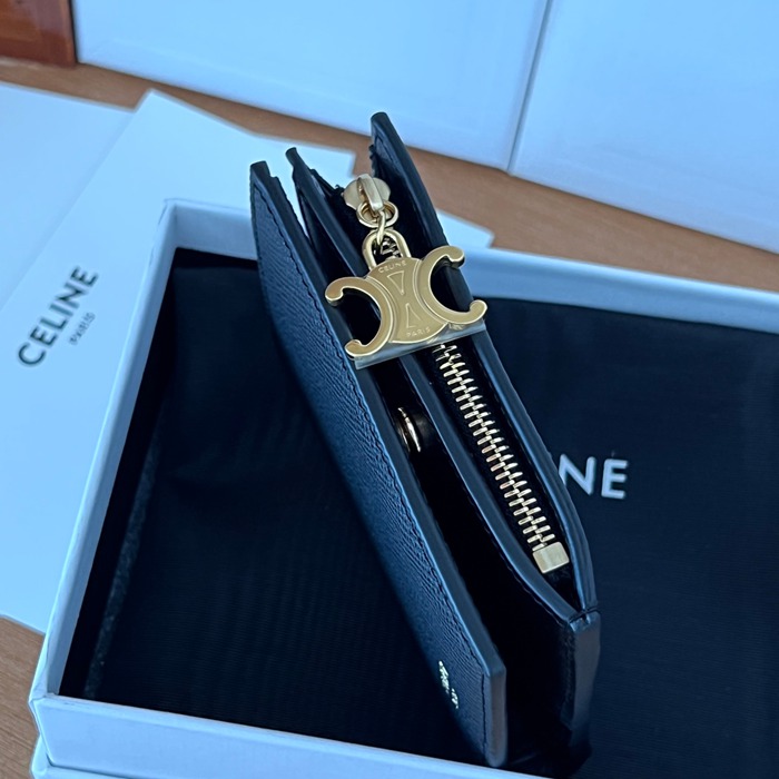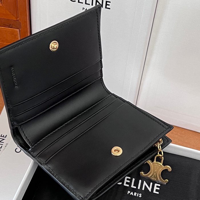 • CELINE トリオンフ ショートウォレット カーフレザー レディース 9×10.5×2cm