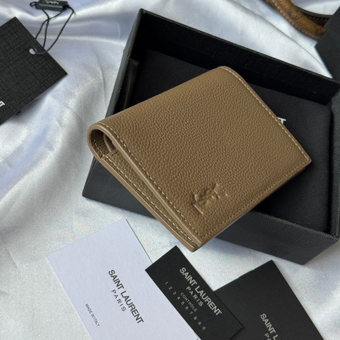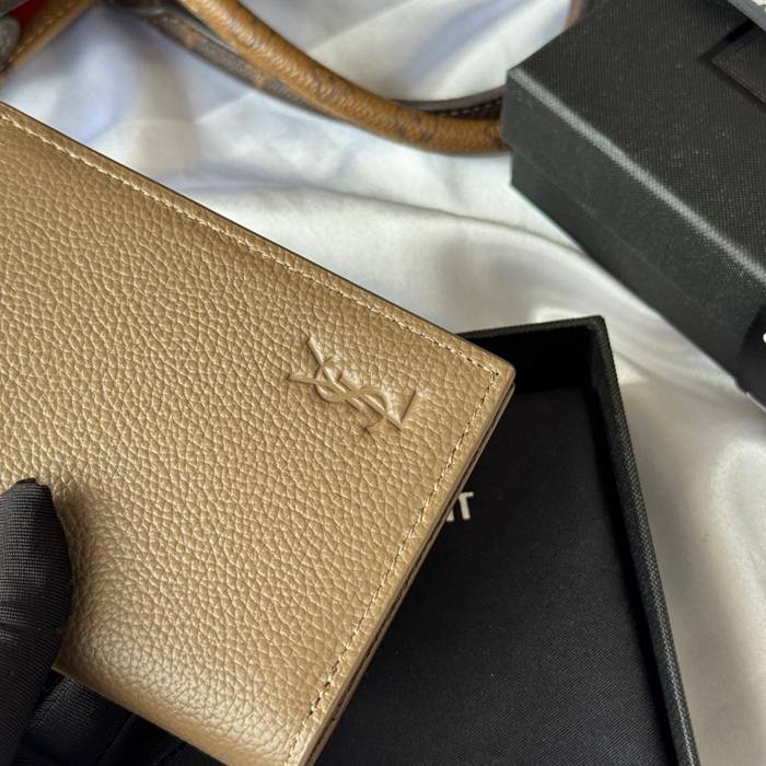 YSL 二つ折り財布 カーフレザー メンズ 9×11.5×2cm