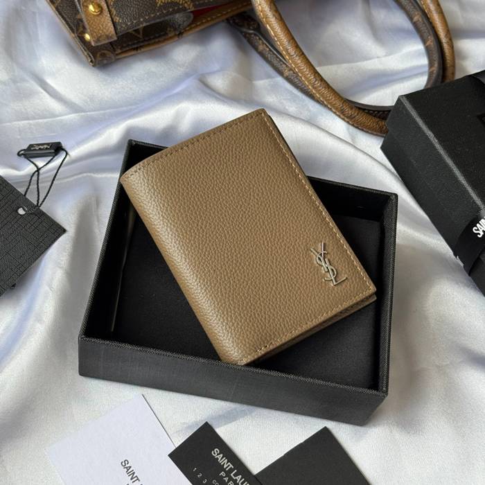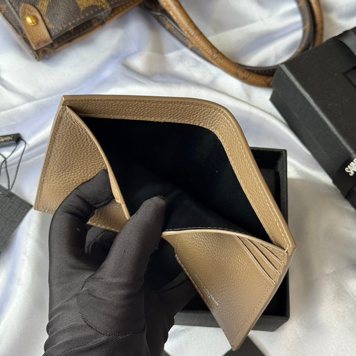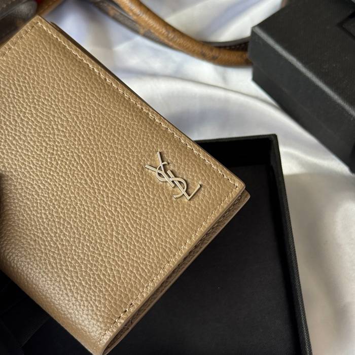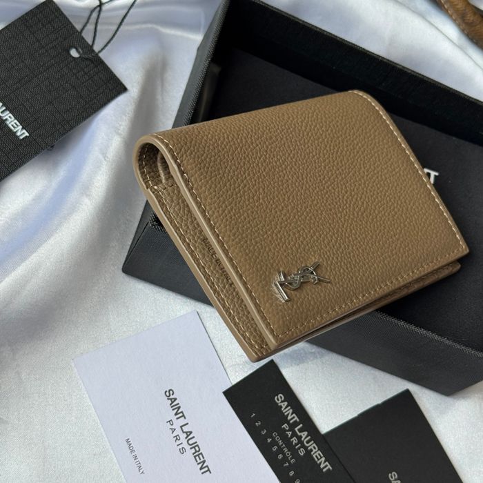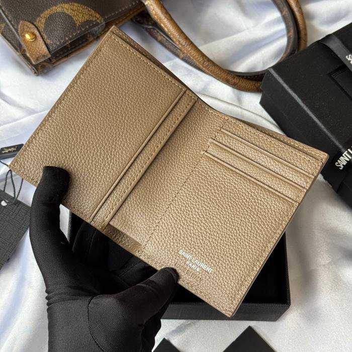 YSL 二つ折り財布 カーフレザー メンズ 9×11.5×2cm