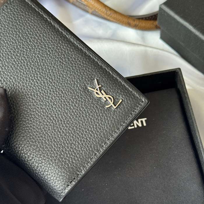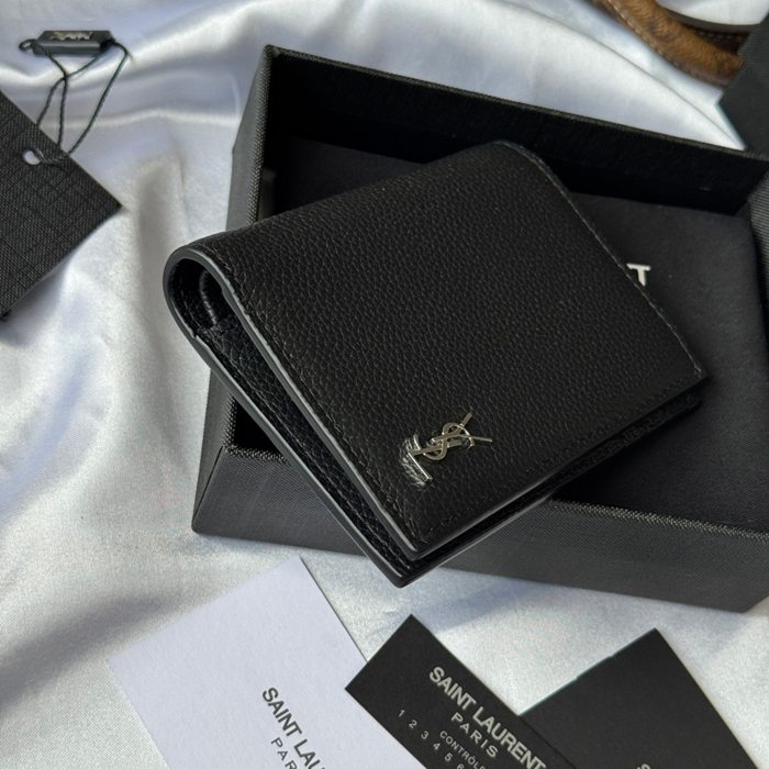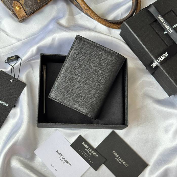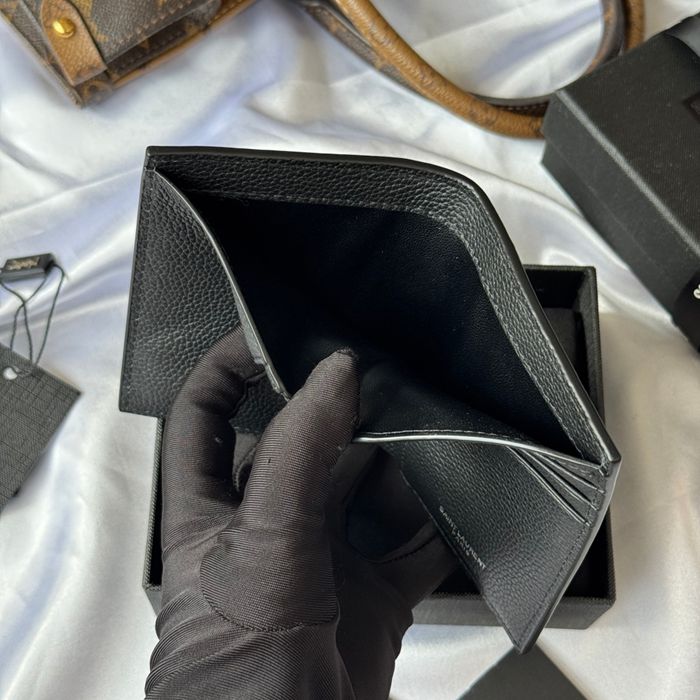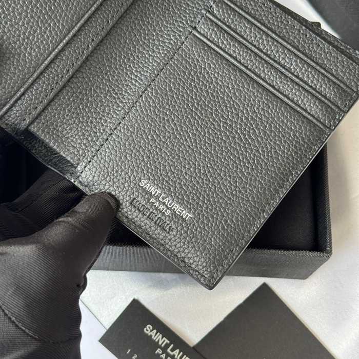 YSL 二つ折り財布 カーフレザー メンズ 9×11.5×2cm